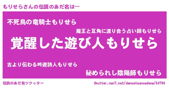 | ヒーロー風カッコイイあだ名 | 『炎刃騎士モリ』『サイバー戦士モリセラ』 |