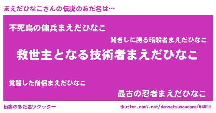 | 男性向けラノベタイトル風あだ名 | 『まえだひなこに滅ぼされるだけの簡単なお仕事です』 |