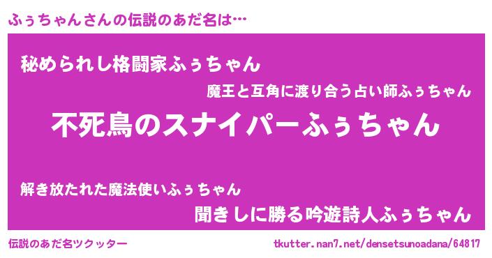 | 女子向けラノベタイトル風あだ名 | 『闇のふぅちゃん』 |