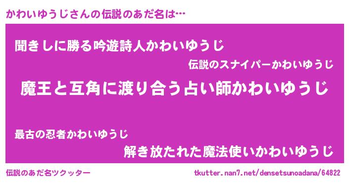 | ヘコむあだ名 | 『かわいゆうじ(笑)』『かわを』 |