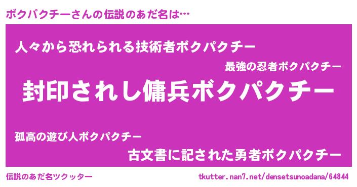 | ヘコむあだ名 | 『ボクにゅー』『ボクパクチー(小並感)』 |