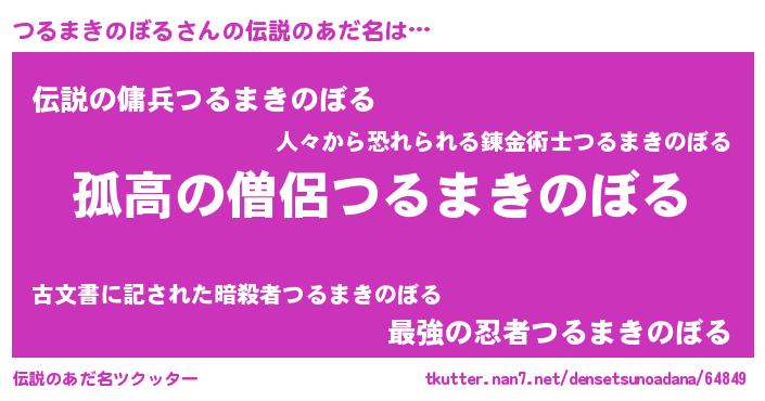 | 女子向けラノベタイトル風あだ名 | 『つるまきのぼるは平凡を望む』 |