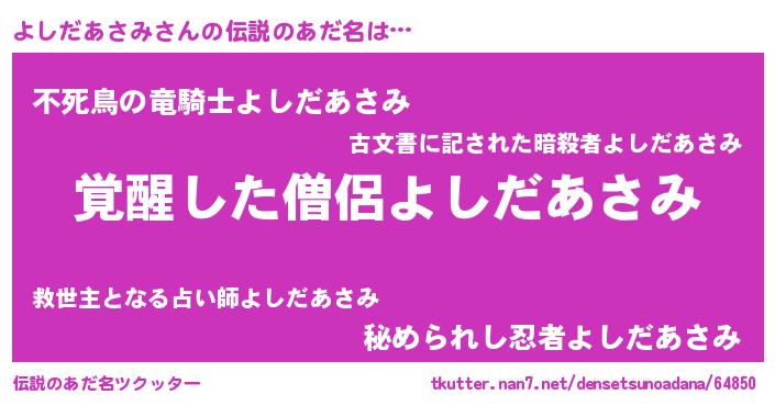 | ヒーロー風カッコイイあだ名 | 『仮面ヨシダー』『魔戒騎士ヨシ』 |