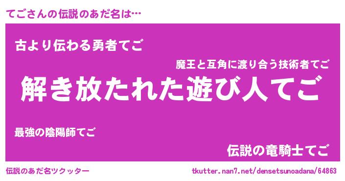 | 意味不明あだ名 | 『とにかく怪しいてご』『自称てご』 |