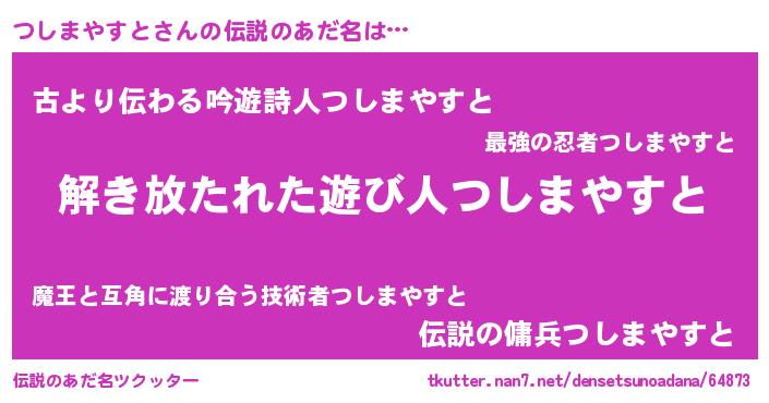 | ヘコむあだ名 | 『つしぷりん』『つしまやすと(小並感)』 |