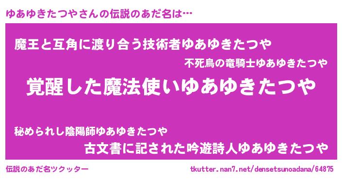 | 男性向けラノベタイトル風あだ名 | 『ゆあゆきたつやの嫁は女の子じゃないと思った?』 |