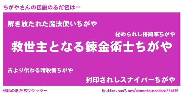 | ヒーロー風カッコイイあだ名 | 『天空の使者ちがや』『銀牙騎士チガ』 |