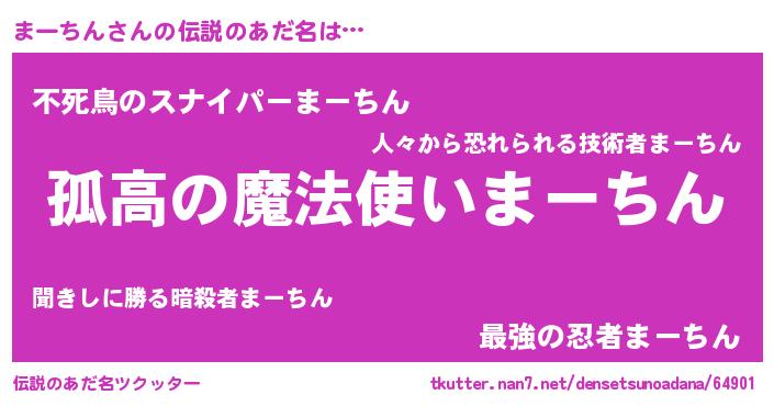 | 胡散臭い通販商品みたいなあだ名 | 『信頼と実績のサプリメント…その名も「まーちん」』 |