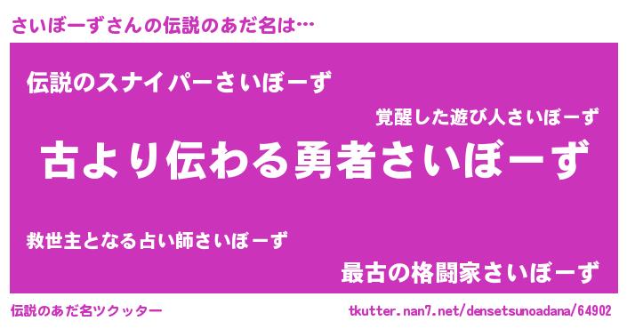 | 意味不明あだ名 | 『自称さいぼーず』『永久保存さいぼーず』 |