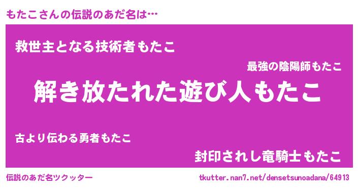 | ヒーロー風カッコイイあだ名 | 『銀牙騎士モタ』『正義の使者もたこ』 |