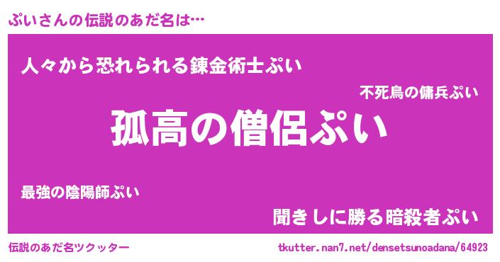 | 男性向けラノベタイトル風あだ名 | 『魔弾の王とぷい』『プイスレイヤー』 |