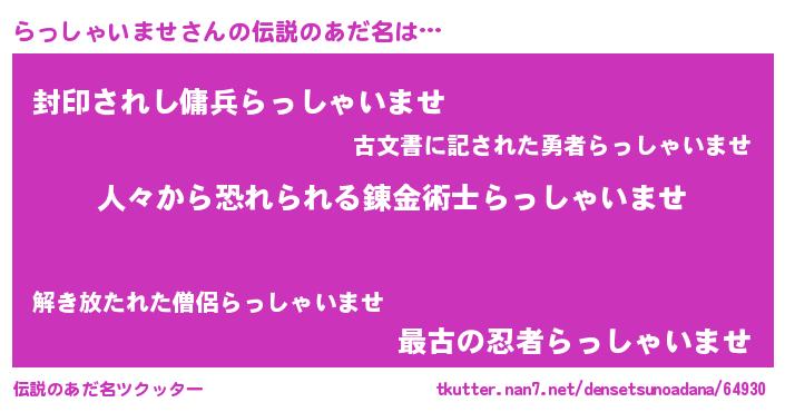 | 意味不明あだ名 | 『しいたけ科らっしゃいませ属』 |