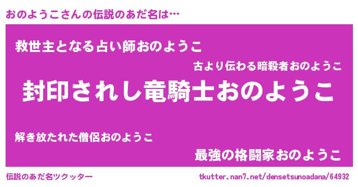 | 意味不明あだ名 | 『ペロリンおのようこ』『自称おのようこ』 |