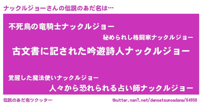 | 意味不明あだ名 | 『永久保存ナックルジョー』 |