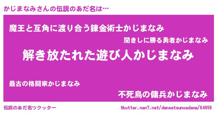 | 男性向けラノベタイトル風あだ名 | 『転生したらかじまなみだった件』 |