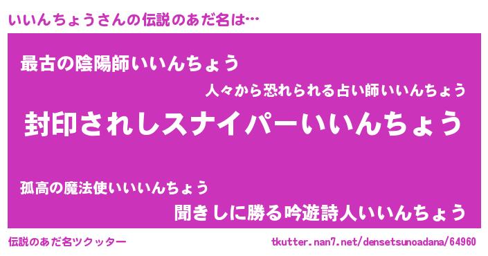 | ヒーロー風カッコイイあだ名 | 『スーパーイインチョウ』 |