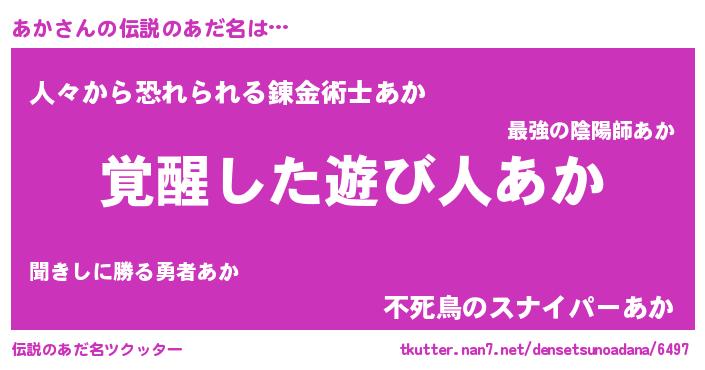 | ヒーロー風カッコイイあだ名 | 『仮面アカダー』『黄金騎士アカ』 |