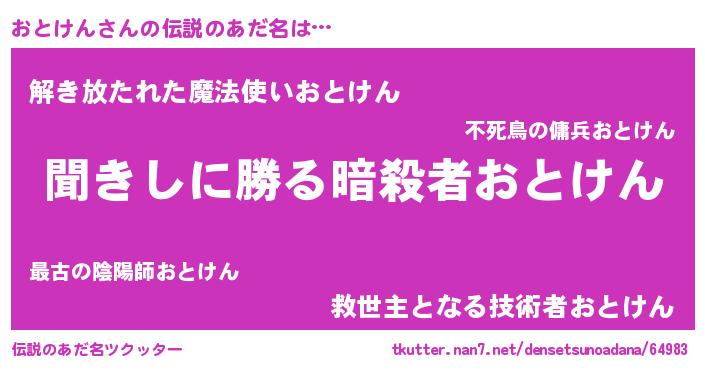 | 胡散臭い通販商品みたいなあだ名 | 『絶対に幸福をもたらす健康食品…その名も「おとけん」』 |
