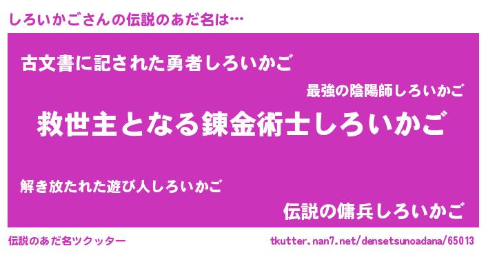 | ヒーロー風カッコイイあだ名 | 『天空の使者しろいかご』『仮面シロダー』 |