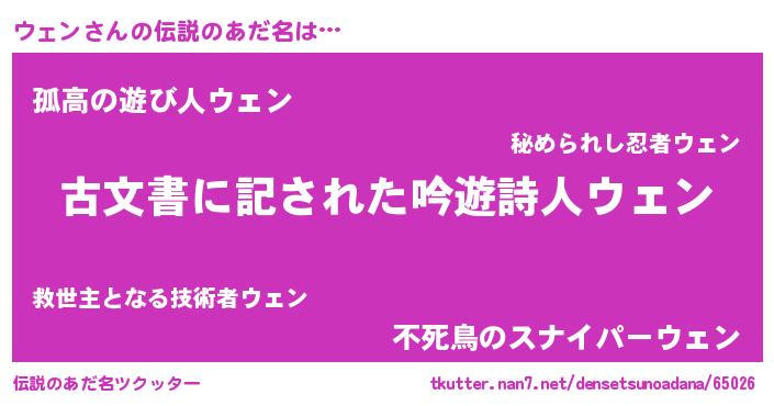 | ヘコむあだ名 | 『ウェン(笑)』『ウェっぺ』 |