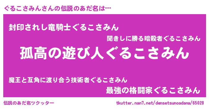 | 女子向けラノベタイトル風あだ名 | 『ぐるこさみんは平凡を望む』 |