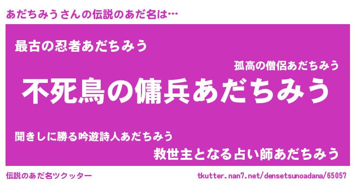 | 意味不明あだ名 | 『住所不定無職あだちみう(43歳)』 |