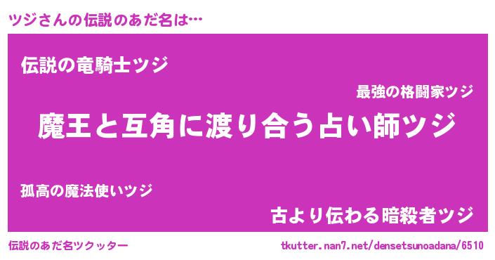 | 男性向けラノベタイトル風あだ名 | 『この素晴らしい世界にツジを!』 |