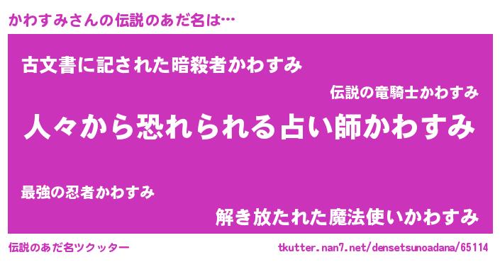 | ヒーロー風カッコイイあだ名 | 『正義の使者かわすみ』『仮面カワダー』 |