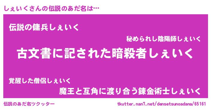 | 意味不明あだ名 | 『永久保存しぇいく』『自称しぇいく』 |