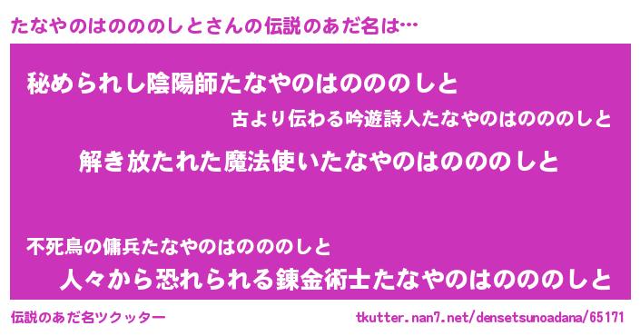 | 欧米人風あだ名 | 『ウサインたなやのはのののしと』 |