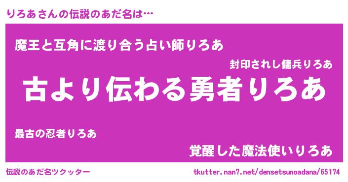 | 男性向けラノベタイトル風あだ名 | 『この素晴らしい世界にりろあを!』 |