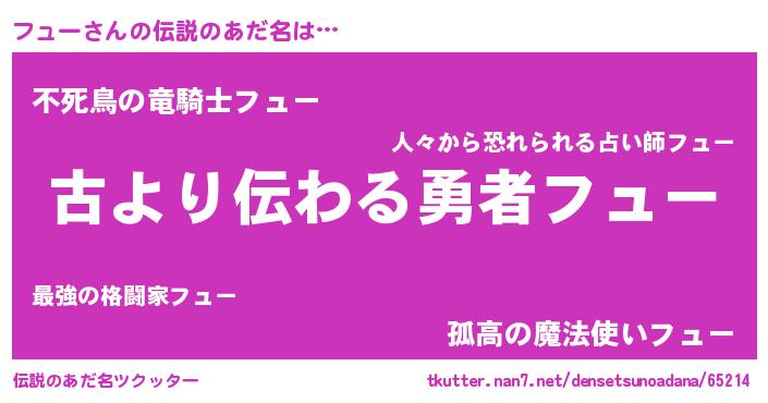 | ファンタジー風あだ名 | 『ゼフュトゥ』『フュディッシュ』 |