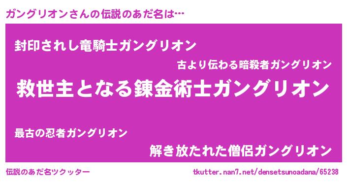 | 男性向けラノベタイトル風あだ名 | 『この素晴らしい世界にガングリオンを!』 |