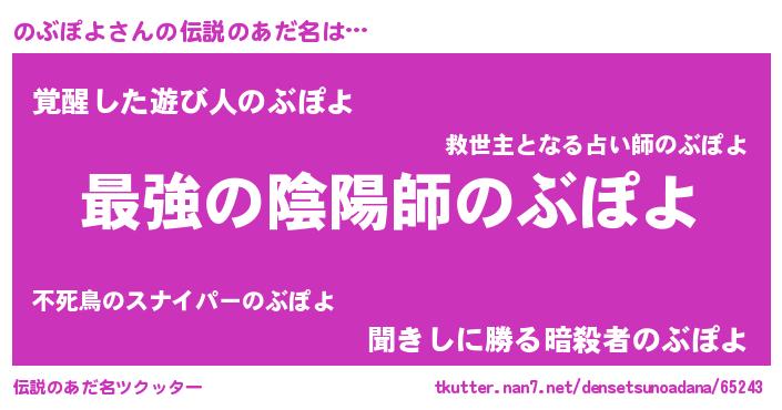 | 男性向けラノベタイトル風あだ名 | 『うちの娘の為ならば、俺はもしかしたらのぶぽよも倒せるかもしれない。』 |