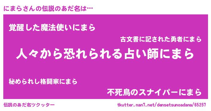 | ヒーロー風カッコイイあだ名 | 『友情の使者にまら』『究極戦士ニマラ』 |
