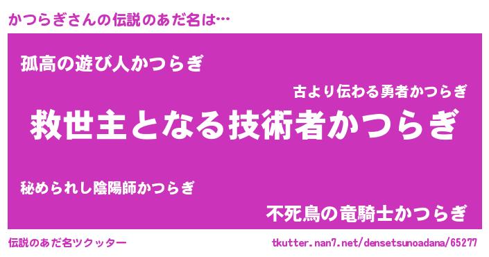| ヒーロー風カッコイイあだ名 | 『天空の使者かつらぎ』『黄金騎士カツ』 |