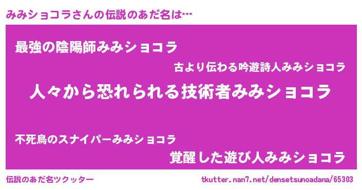 | 意味不明あだ名 | 『眠気覚ましガムみみショコラ味』 |