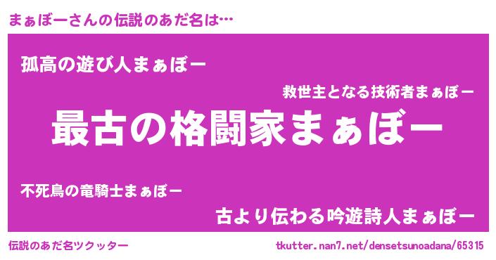 | 意味不明あだ名 | 『まぁぼーフォーエバー』『自称まぁぼー』 |