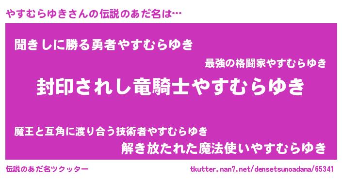 | ヒーロー風カッコイイあだ名 | 『スーパーヤスムラユキ』『仮面ヤスダー』 |