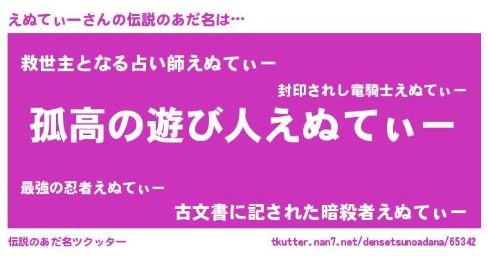 | ファンタジー風あだ名 | 『ファントムエヌス』『ゼエヌトゥ』 |