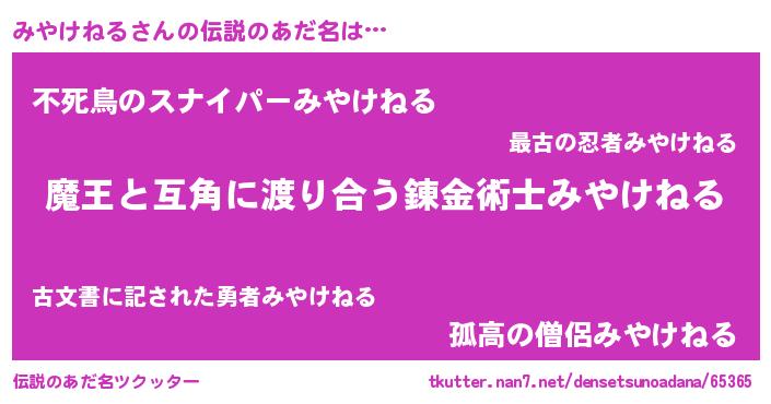 | ヒーロー風カッコイイあだ名 | 『仮面ミヤダー』『友情の使者みやけねる』 |