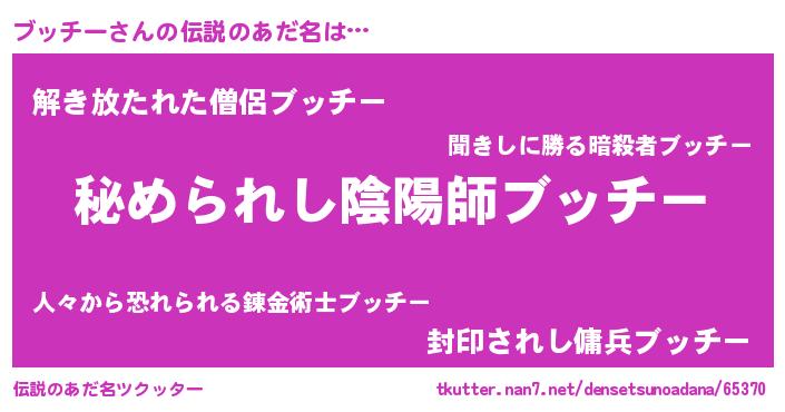 | 男性向けラノベタイトル風あだ名 | 『やはりブッチーの青春ラブコメはまちがっている 』 |