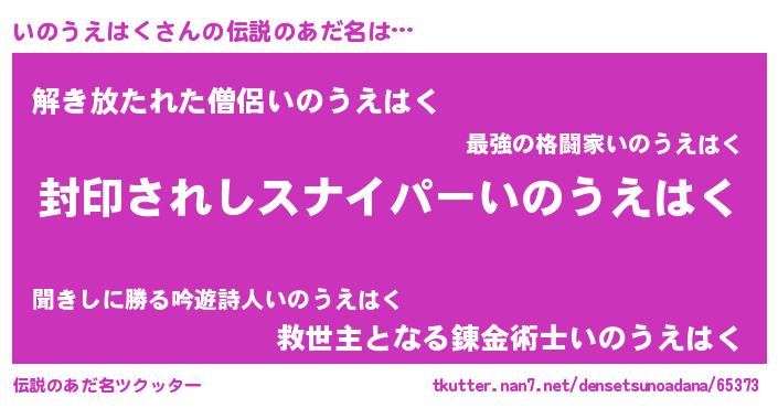 | 胡散臭い通販商品みたいなあだ名 | 『億万長者になれる霊験あらたかなお札…その名も「いのうえはく」』 |
