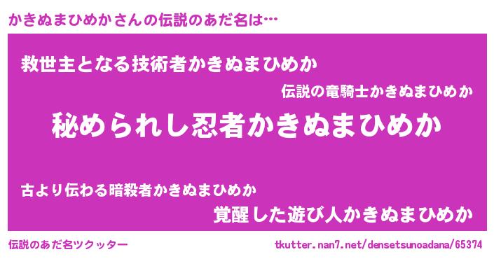 | 意味不明あだ名 | 『かきぬまひめかフォーエバー』 |