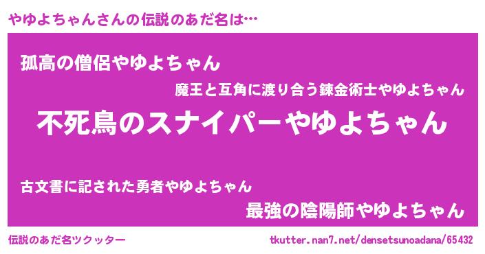 | 意味不明あだ名 | 『住所不定無職やゆよちゃん(86歳)』 |