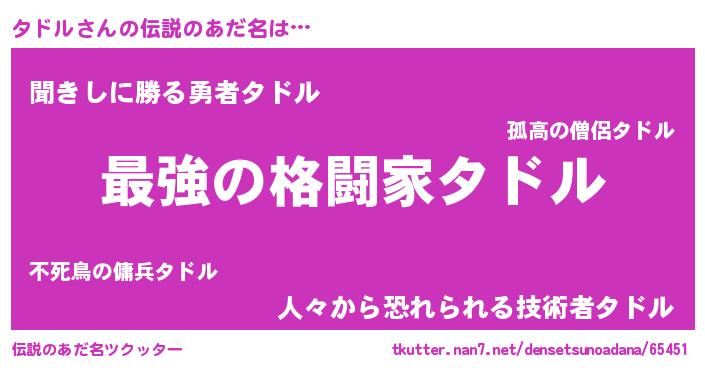 | 意味不明あだ名 | 『自称タドル』『住所不定無職タドル(98歳)』 |