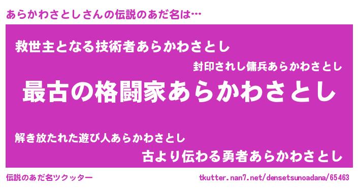 | 意味不明あだ名 | 『あらかわさとしフォーエバー』 |