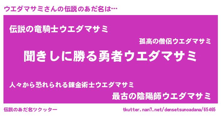 | 男性向けラノベタイトル風あだ名 | 『ウエダマサミスレイヤー』 |