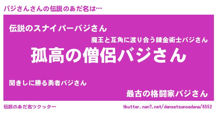 | 男性向けラノベタイトル風あだ名 | 『ダンジョンにバジさんを求めるのは間違っているだろうか』 |