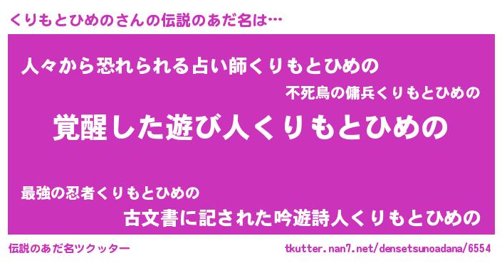 | 意味不明あだ名 | 『自称くりもとひめの』 |